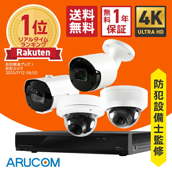 【送料無料】1年保証 防犯カメラ セット 屋外 屋内 1台〜4台 PoE 4K800万画素 官公庁採用 高品質 防犯カメラセット 監視カメ...価格39999円 (税込・送料込)評価などレビュー数 47 件